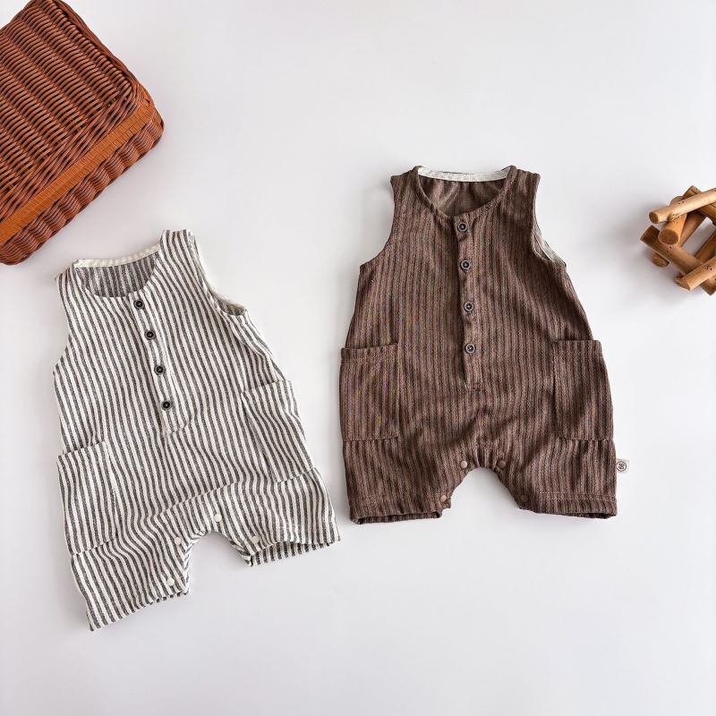 【66-90】ベビー/キッズ 夏新作 ノースリーブカバーオール (子ども服 半袖 春服 夏服 可愛い おしゃれ カバーオール 女の子 男の子 ロンパース 赤ちゃん シンプル 可愛い)