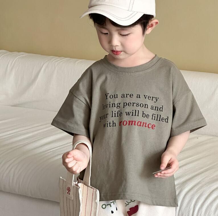 (#子供服 #クルーネック #可愛い #英字 #Tシャツ #半袖 #夏服 #Tシャツ #可愛い #登園着 #カジュアル #トップス #柔らか #半袖Tシャツ)WA12064