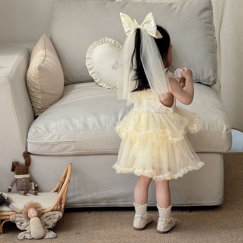 70-100/ フリルドレス+リボンピンセット. (WA13510 女の子 韓国こども服 ベビー服 子供服 誕生日 ドレス セレモニー バースデー ハーフバースデー キッズドレス )