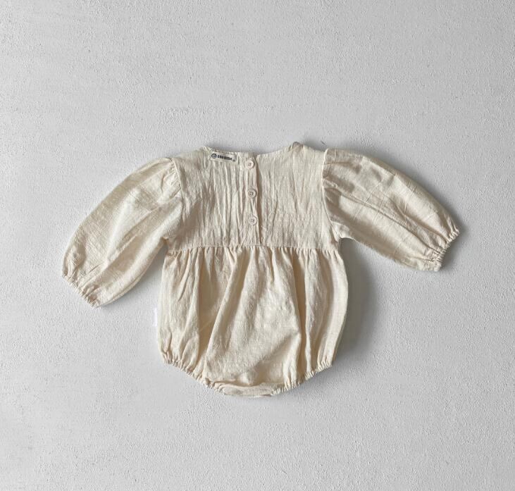 【66-90】ベビー服 ふんわりロンパース (韓国子供服 森ガール 可愛い おしゃれ カバーオール 綿麻赤ちゃん シンプル 可愛い)