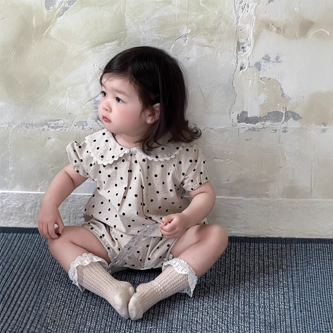 【66-90】ドットベビーロンパース (ベビー服 ロンパース ベビー服 夏服 フリル)