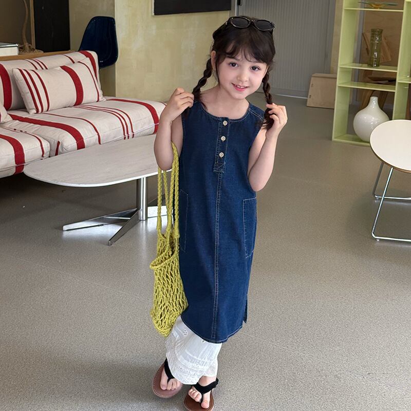 【90-160】ベビー/キッズ デニムワンピース(韓国子供服 半袖 親子コーデ 可愛い おしゃれ カバーオール 女の子 赤ちゃん シンプル 可愛い)