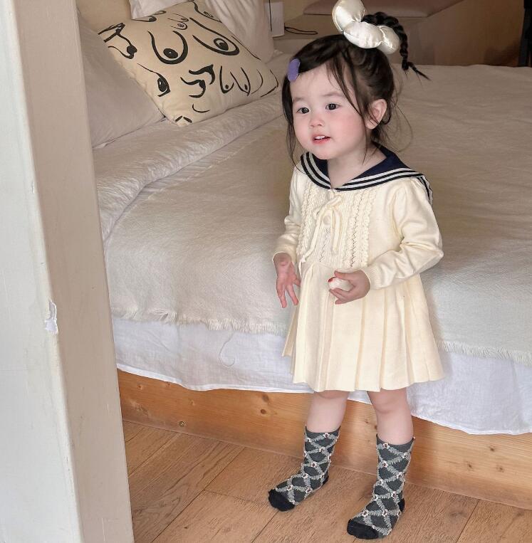 【80-120】 セーラーニットワンピース (セットアップ 秋服 ベビー服 子供服 ワンピース 発表会 おでかけ セーラー)