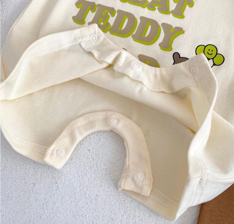 【66-90】 おしゃれクマさんロンパース 2色 (夏服 ベビー テディベア 新生児 パジャマ 可愛い 男の子 女の子 ベビー用品 可愛い 子供服 ロンパース )