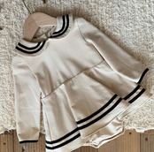 シンプルなデザインとふんわりとしたスカートロンパースのデザインがポイント◎