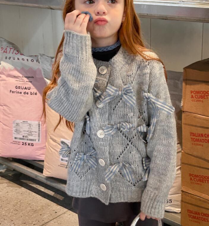 【90-150】baby&kids ribbonカーディガン (ベビー服 キッズ レース フリル かわいい 秋服 冬服 子供服 おでかけ)