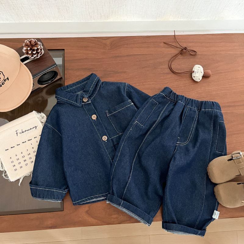 【70-110】 デニムキッズセットアップ(セットアップ 秋新作 ベビー服 子供服 デニム 秋服)