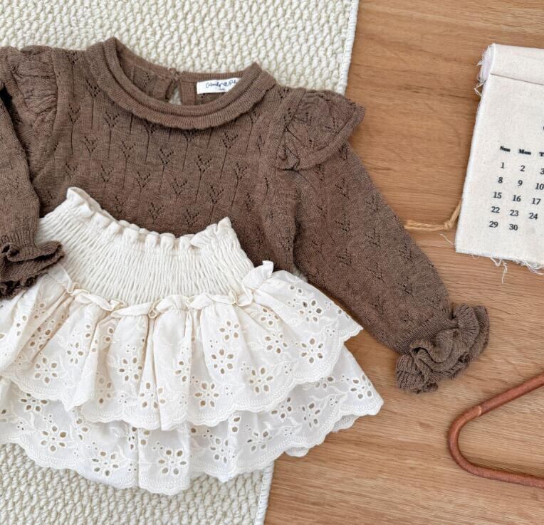 【70-110】 ニットフリルトップス(秋新作 ベビー服 子供服 カーディガン ニット キッズ )