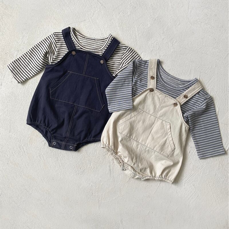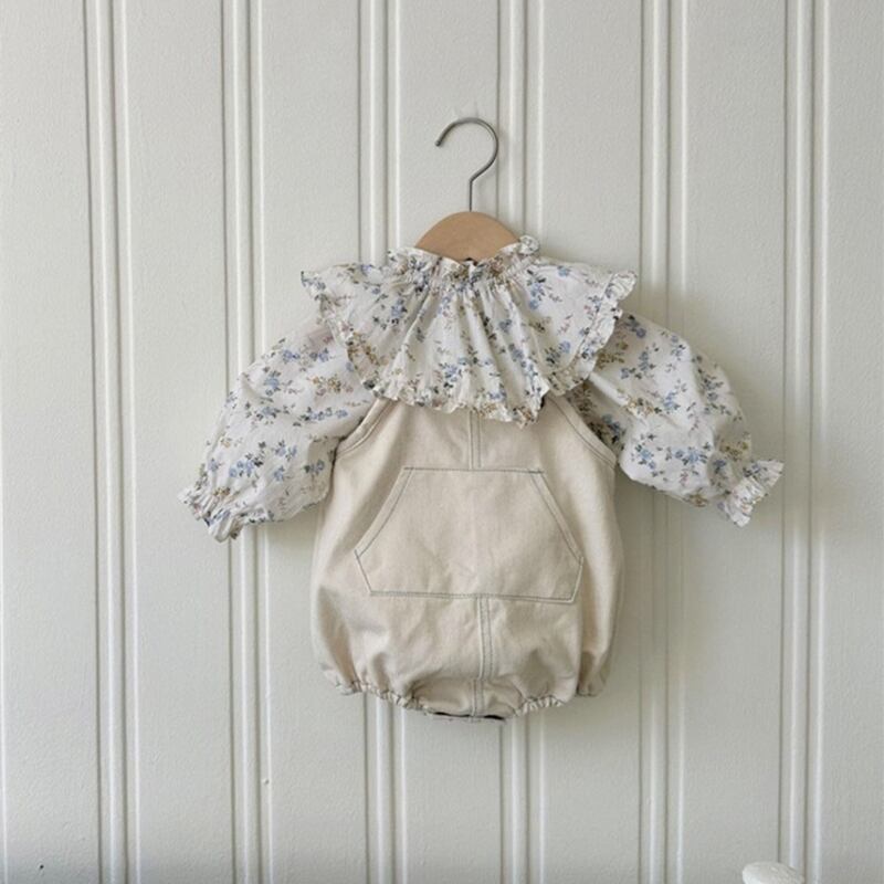 【66-90】韓国子供服 秋新作 ベビー服 レトロ デニム ロンパース(韓国子供服 新生児 可愛い おしゃれ 柔らかい 幼児 子供服 男の子 女の子 可愛い 春 夏 秋)