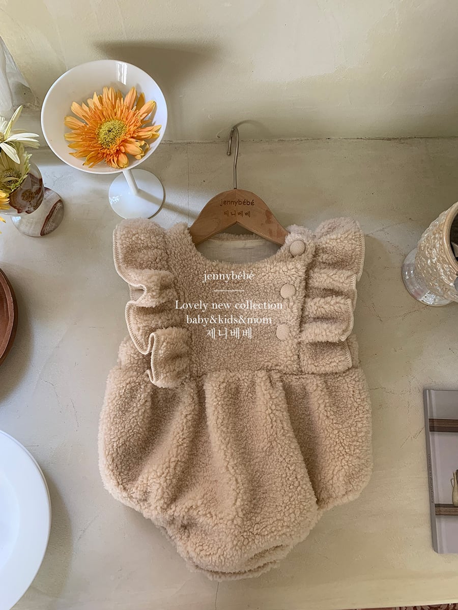 【baby モコモコボアフリルロンパース 】