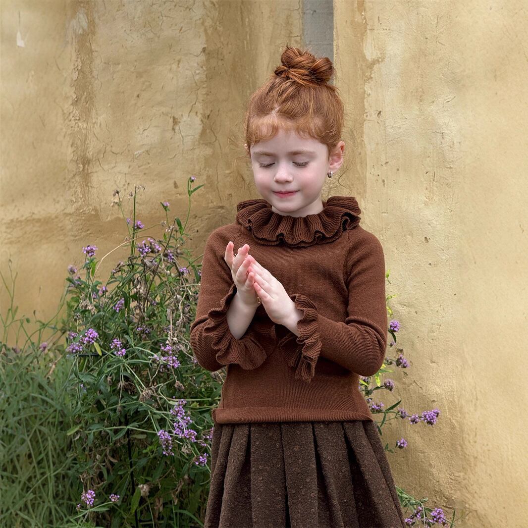 【90-140⌇秋冬/子供服/ ニットセーター フリル】