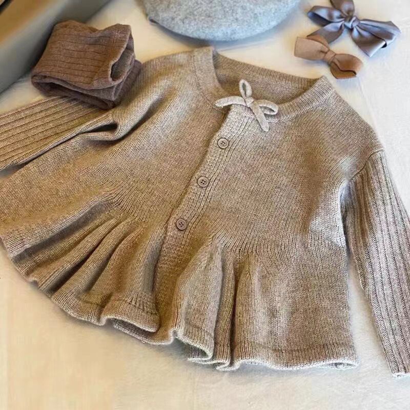 【80-140】秋冬新作 フリルニットカーディガン