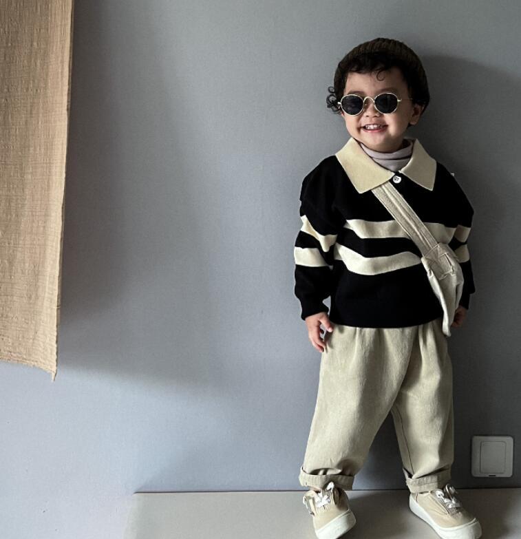 【80-130】秋新作 シンプルストライプ(ベビー服 子供服 秋冬 ニット セーター 男の子 女の子)
