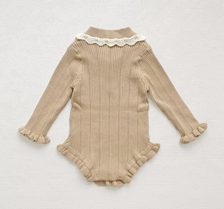 【66-90】baby ニットフリルロンパース (韓国子供服 子ども服 ニット 春服 ロンパース ベビー服)