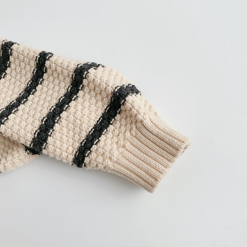 【80-130】シンプルストライプニット(ベビー服 子供服 秋冬 ニット セーター 男の子 女の子)